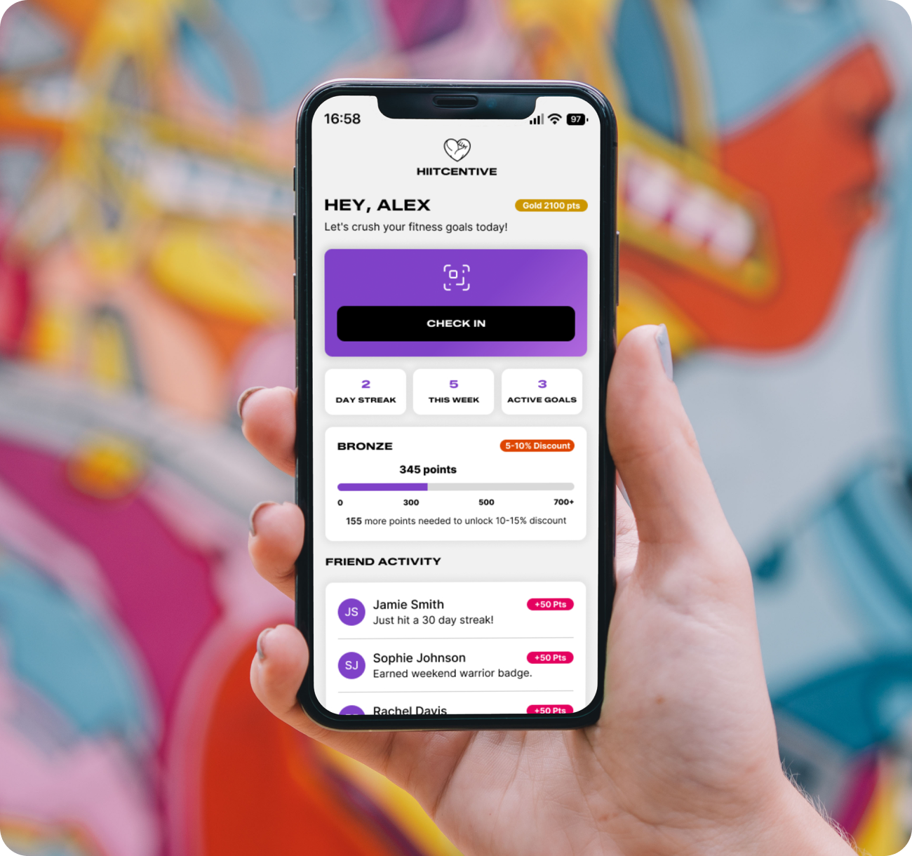Stay consistent, stay rewarded. HiiTcentive turns your workouts into points you can redeem for discounts on fitness, wellness, and lifestyle brands – motivating you every step of the way. It’s free, fun, and made to keep you moving.